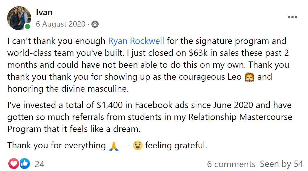 and put in consistent work on your business. This is not a “get rich quick” scheme. We’ve helped clients develop programs that are now earning them $120k/mth+, but they've done their part to get there.